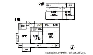 間取り 4DK(建物 82.0u) 方位 南向き 構造 木造瓦葺2階建(和8 /和6 /和4.5 /和4.5帖 /DK) 築年数 昭和 年 駐車場 敷地内に有り 取引態様 専任媒介 事務手数料 1.05ヶ月 主な設備 東京電力、東京ガス、東京都水道局