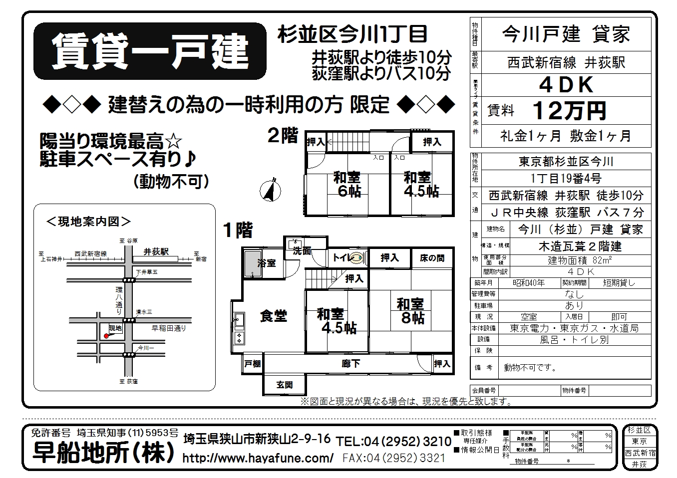 ◆■◆ 建替えによる一時利用目的の方 限定 ◆■◆