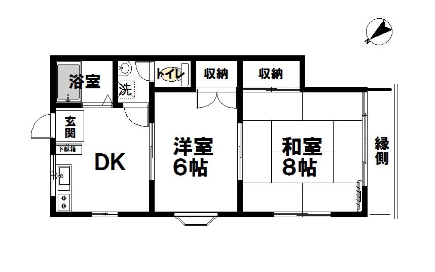 間取写真 和室8帖 収納(和室8) 洋室6帖 収納(洋室6) ☆出窓☆(洋室6) DK5 キッチン 洗面+洗濯機置場 トイレ 浴室 下駄箱 縁側♪♪ ※ クリックすると拡大した画像が表示されます。